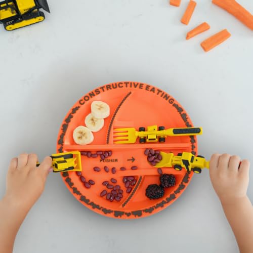 Constructive Eating Construction Combo with Set of 3 Utensils, Plate and Placemat for Toddlers, Infants, Babies and Kids