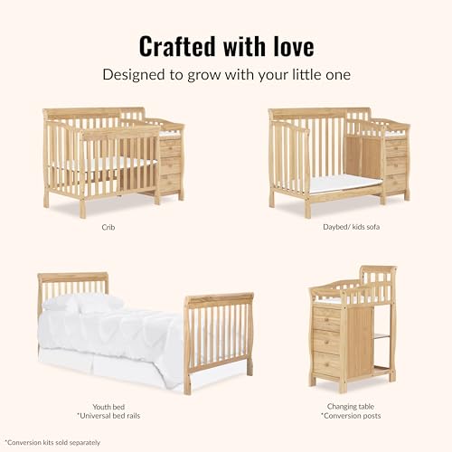 - CONVERTIBILITY OPTIONS: The Jayden 4-in-1 Mini Convertible Crib and Changer grows along with your child. Starting as a crib, you can convert it into a mini daybed and twin-size bed (bed rails sold separately)! Its compact size makes it ideal for small spaces